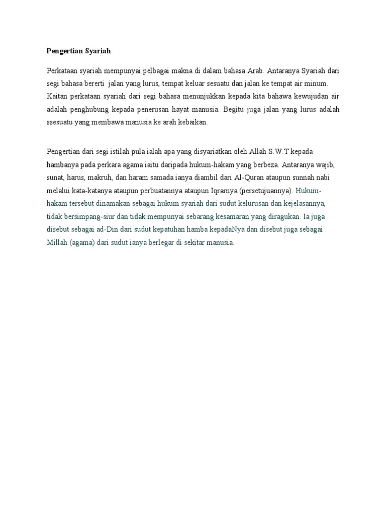 Pengenalan Syariah Dari Segi Bahasa Merujuk Kepada Jalan Yang Lurus Tempat Keluar Sesuatu Atau Jalan Ke Tempat Air Minum Kaitannya Dengan Air Menunjukkan Kepada Kita Bahawa Kewujudan Air Adalah Penghubung Kepada Penerusan